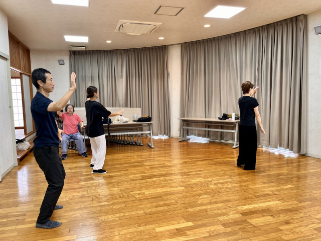 その中である動き方について皆さんで一緒に練習してみました。太極拳をされたことがない方でもイメージとして浮かぶような、いわゆる太極拳ぽい動きです。