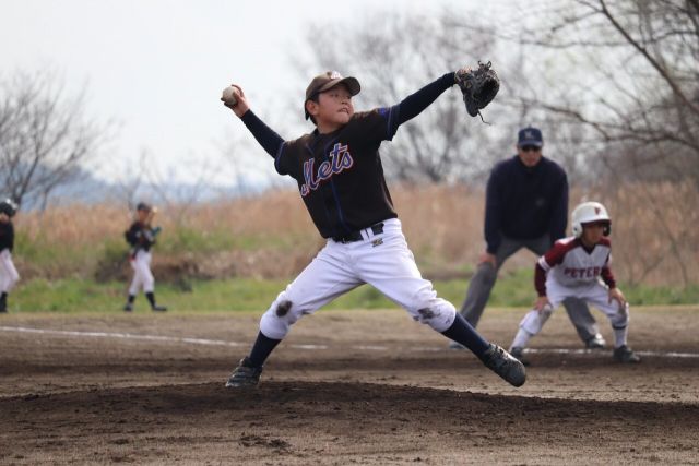 (サスケの打席中にワイルドピッチで、ケイスケが生還 ●1点)