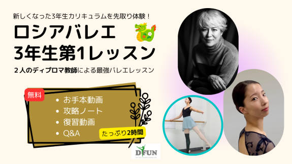 全12レッスンあるうちの第1レッスンを構成するバー、センター、アレグロ、ポアントの全てを、ディプロマ取得教師2名による最強タッグによる指導にて体験して頂けます。