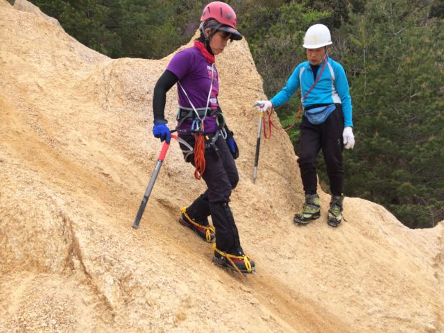 空荷なら簡単に登れるところも、歩荷&アイゼンだと難易度がぐっと上がります。