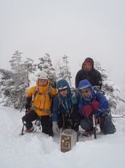 時間を無駄に割いてしまいました。雪も深くなってくるし、風雪で相変わらずの視界不良。本谷山に到着した時点で時間いっぱい