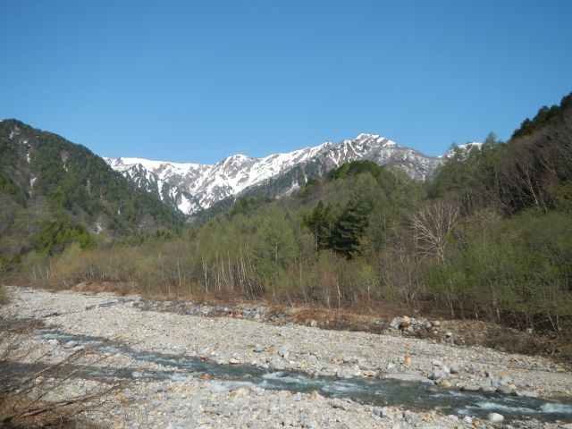 5/2(土)朝目覚めると雲一つ無い快晴。出発地点からも爺ケ岳の稜線がくっきり見えます。