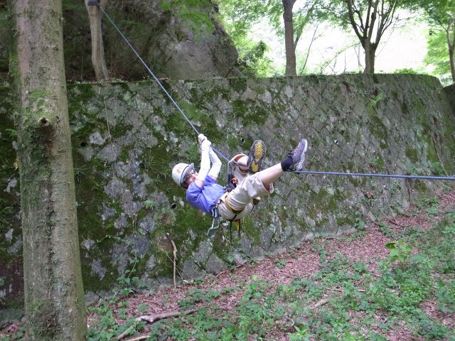 チロリアンというのは登りになるとしんどいですね、テレビで消防隊とかの人がザッザッザッと進んでいるのしか見たことなかったのですが、手で体重を支えるのがいかに大変か、というか無理かということを実感しました。ロープの結び方についてもその時はわかったつもりで家でも少しは練習するのですが、これが現場でパニックになった時にもできるかといわれるとまだ自信がありません。「体で覚える」まで練習するしかありません。ありがとうございました。