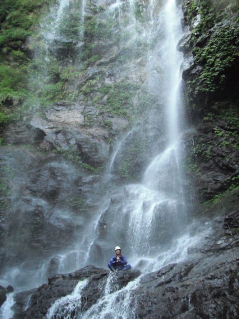 三ノ滝に打たれるfujiChanさん頭の中はヤマヒルのことでしょうか、それとも・・・無念無想