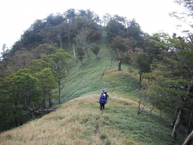 石楠花岳からは大峰奥駈道です。中高年二人組を追い越した以外は人にも出会わず静かな中でとてもよい雰囲気の道を歩くことが出来ました。沢登りの帰りは「下り」のはずが奥駈道はなんとか岳をのぼって降りてまたなんとか岳とアップダウンの繰り返しです。しんどかったです、体力の限界。