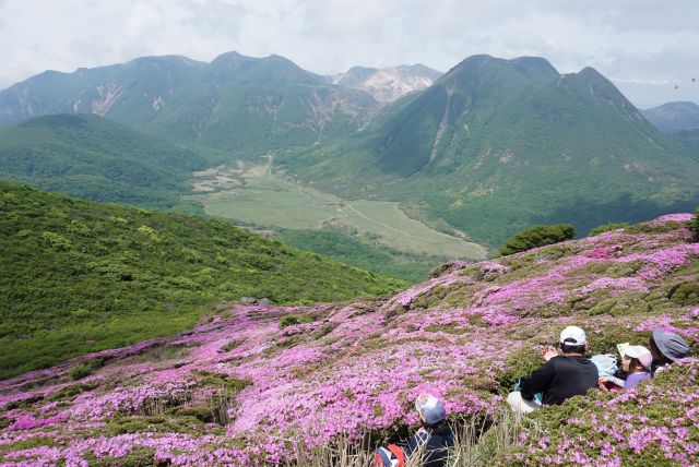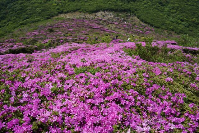 1日目はテント場に着く頃まで小雨まじりの天候でしたが、2日目は曇り時々晴れのまずまずの天気でした。今年のミヤマキリシマは例年より少し咲くのが遅れ気味でもう1週間後ぐらいが満開という感じでした。それでも平治岳のミヤマキリシマは5~8分咲でしたが素晴らしかった。沢山のハイカーがこの季節この山に来るのも納得できます。それにしても凄い人。つつじの季節の大和葛城山より花、人とも凄いです!