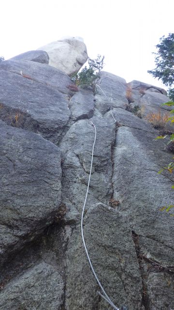 特にビレーしなくても、そんなにプレッシャーは感じずに登れる岩場でした。写真のように、確保用にワイヤーがセットはされています。トリピーはハーネスを着用して、ワイヤーにビレーしていました。確かに確実に安全かもしれません。