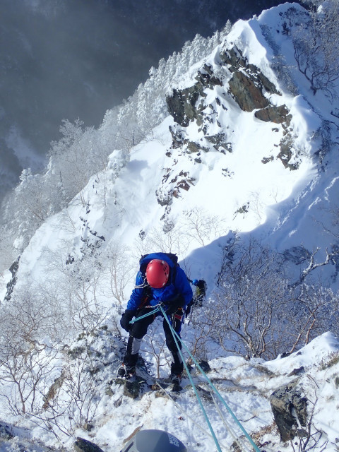 核心部はフリーで行けそうだったが安全の為ロープを出し通過した。