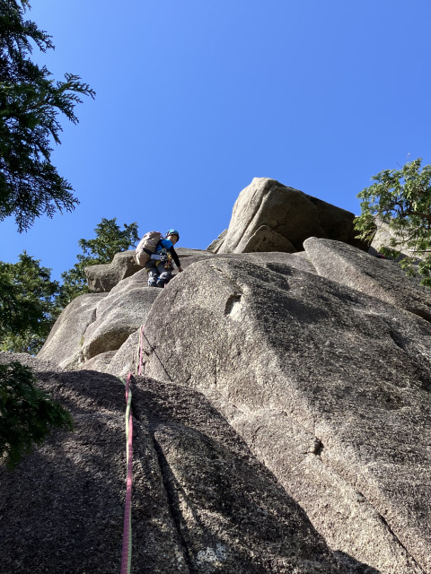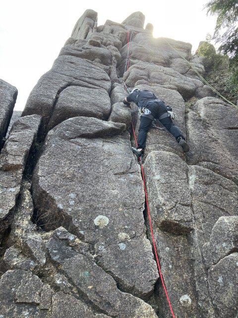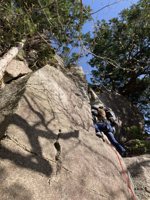 取り付きのP7を登るひーぼーさん