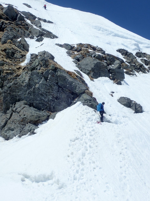 進み雪稜では足元が決まらない箇所が