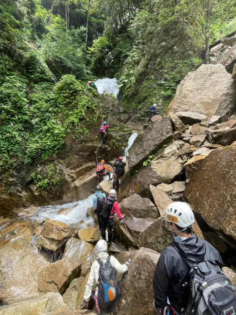 若い講習生さん達のパワーをもらい、ベテランの会員さんに囲まれ安心安全な、沢講習一回目、とても楽しかったです。