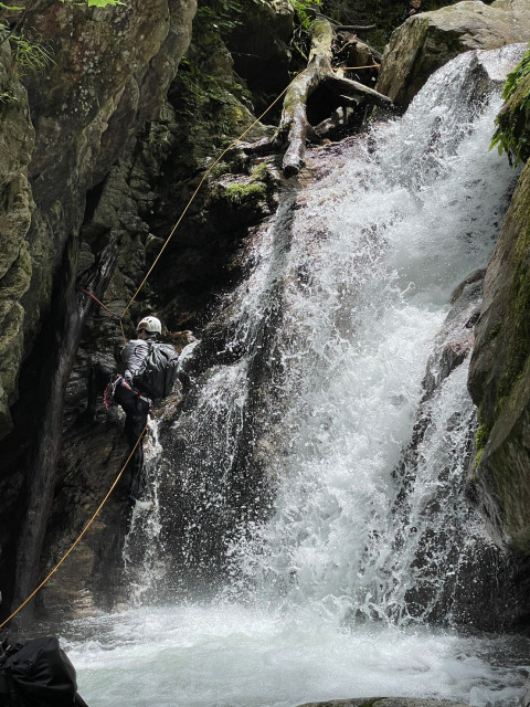 はじめての沢登りだという、講習生さんもいらっしゃって、緊張しながらの沢講習。心配をよそにサクサク魚止めの滝を登攀。大摺鉢でウオータースライダーを楽しみました。はじめての沢登り楽しんでもらえたようです。夏山前の体力作り?沢前後のハイキングも歩きごたえたっぷり。疲れて良く寝れました(-_-)zzz