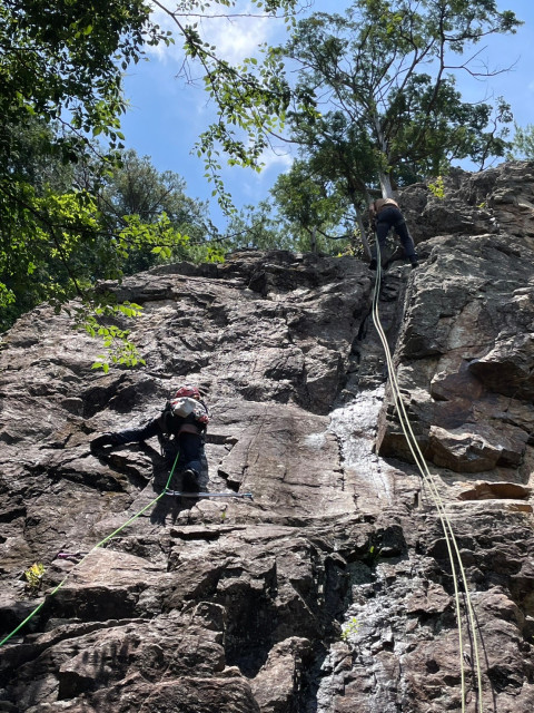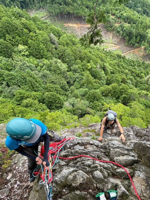 いつもなら易しいグレードのはずが1p、2pは濡れ濡れ。2パーティに別れ、少し巻いたりとかしながら登りました。