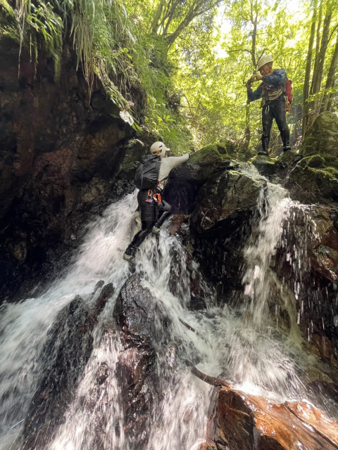 やっちゃんは沢を始めたばかりと思えないようなポテンシャルの持ち主。サクサクと安定して登る。素晴らしい。