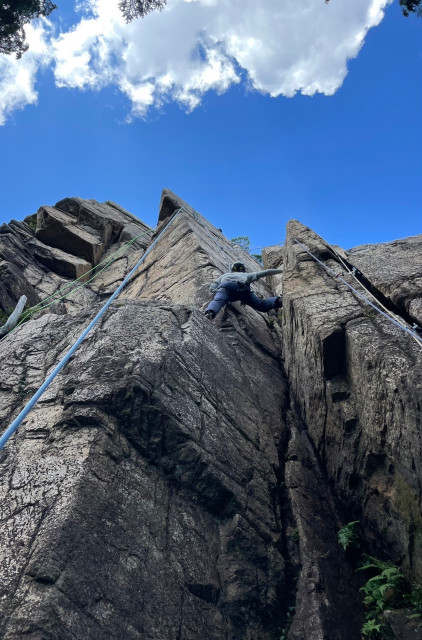 クライミングはほぼしたことのない"やす"は高い所が苦手で怖いし、落ちないかな?とヒヤヒヤ不安でしたが先輩方のビレイで安心して登れました。