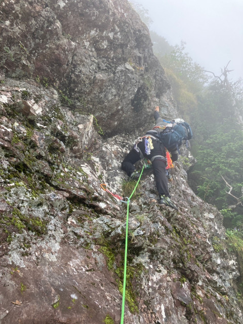 今日は雨降ってるので時間かけられないのでA0で突破。核心超えた後のスラブも濡れてるから足が滑る滑る😂何とか5p終了点までたどり着いた頃雨も止んで一安心。