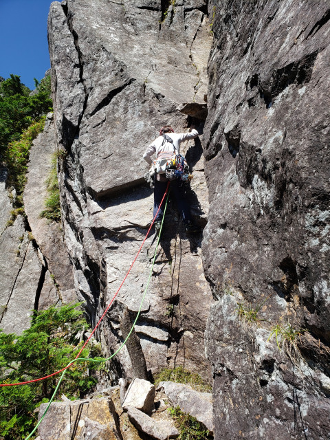 錫杖岳左方カンテクライミング