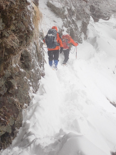 雨混じりの雪、出発を少し遅らせ7時30分頃出発。