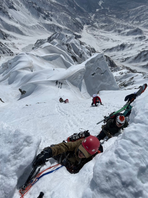 時々緩い箇所もあるので、しっかりアックスを刺してアイゼンを蹴り込んで確認しながら登る。