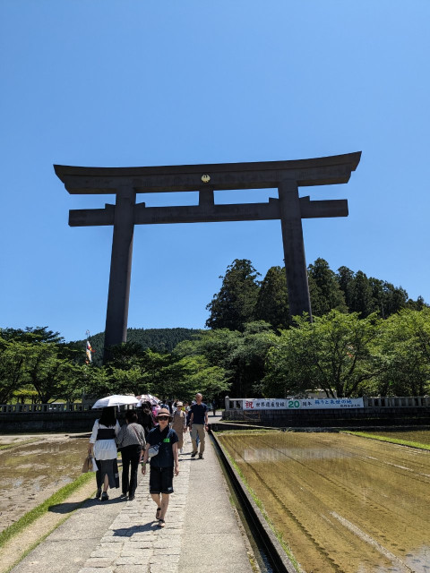<大斎原の大鳥居>追伸:翌日、往路と同じ奈良交通・八木新宮特急バスを利用して帰阪したのですが、湯の峰温泉のバス停では、多くの欧米人がバス待ちをしていました。熊野古道歩きが目的なのでしょうか?京都や大阪にかぎらず、日本のいたる処で外国人観光客をみかけます。