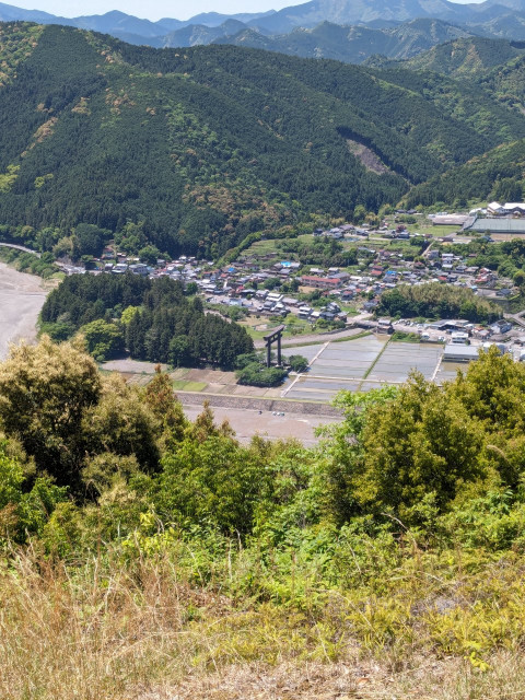 <コース後半から見えた熊野本宮大社旧社地「大斎原」(おおゆのはら)>