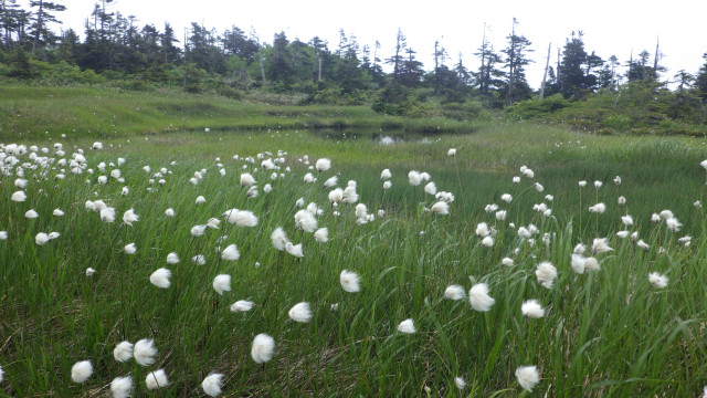午後からは山頂周辺の湿原を散策。とにかく、こんなに満開のワタスゲは始めて見ました。