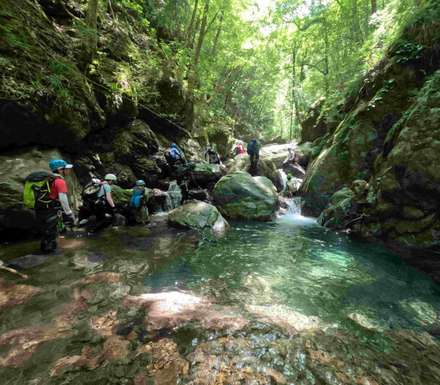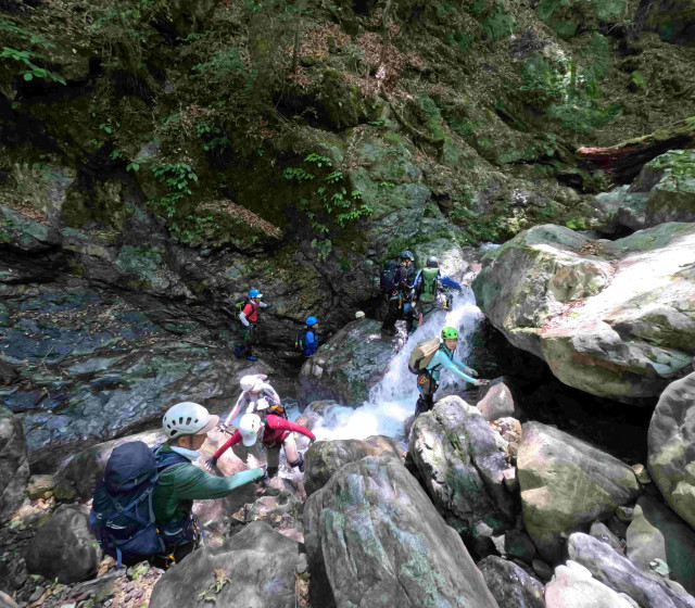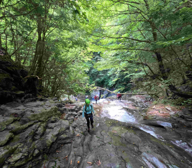 うだるような暑さの中、ゆったり沢登りを楽しみました。皆さんけががなくてよかったです。