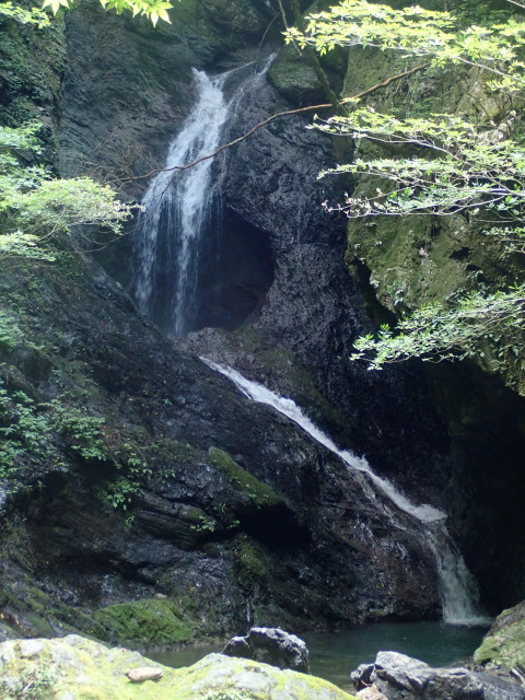 風洞を持つ3段35mの滝。本には、「落水する岸壁に風洞があり、牛の鳴き声に似た音を出すことから名づけられた」と書いてあるが、下からでは感じ取ることが出来ませんでした。とても魅力のある滝でしたが、登ることはやめて巻いていくことに。