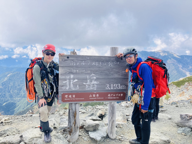 登攀終了後足は重く、30分かけて12:05北岳山頂へ。途中急激にしんどくなり、心が折れそうでしたが、ひーぼーさんが先行して引っ張ってくれたおかげです。