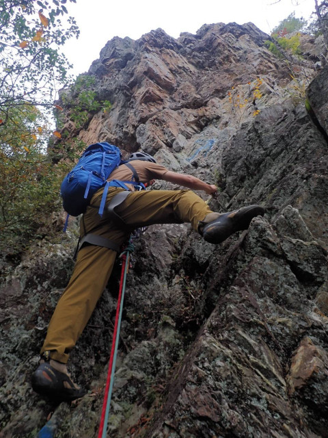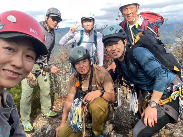 そして無事山頂に立てた時はすごく嬉しかったです。苦労して登って踏むピークの達成感はひとしおですね!私はまだまだ必死に登ることしかできませんが、もっと楽しんでクライミングが出来るようになれば、くせになるだろうなと思いました。岩場から見る景色はいつもの登山と違い、視界がひらけていてとても清々しくて、不思議な感覚でした。紅葉がとてもきれいだった✨️