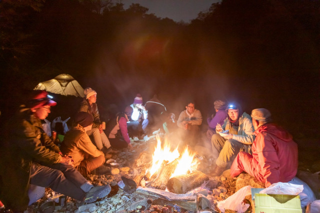 あんな大きな焚き火を囲むことも初めてで木を乾燥させるために半年も置いてるんですね。