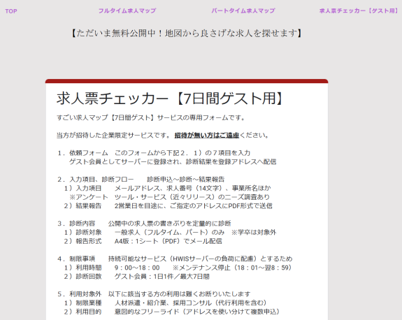 このツールは、あなたの求人票をハローワーク採用のプロ集団(すごい求人票研究会)の基準で診断し、その結果をわかりやすいレポートで教えてくれる優れもの。