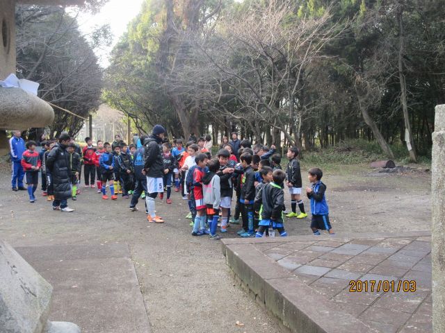 代表あいさつのあと、団員は近くの岡田神社へ初詣