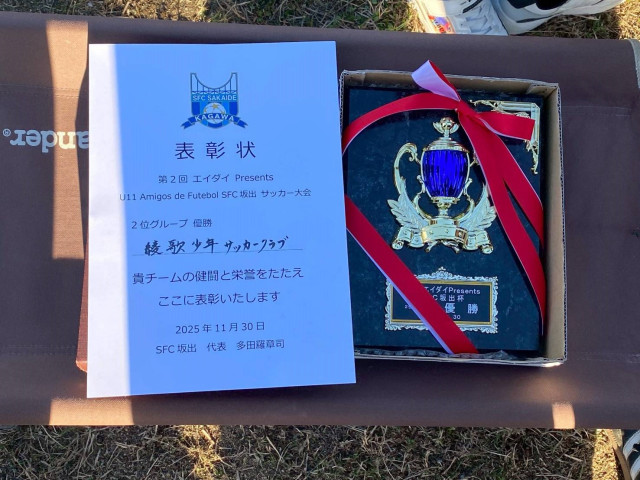 見事に2位リーグで一位になり、賞状と盾をゲット!