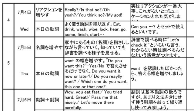 今回お申込みいただいたママ用に作成しましたプラン表の写真一部を参考までに、サークルスクエア内 ブログ に貼り付けておきます。プラン表は事前カウンセリング後、ママの英語力や生活パターンを考慮し作成しお渡しします。