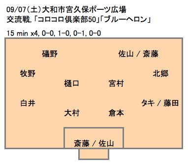 O50_#pre005:2019/09/07(土)13〜15時・宮久保スポーツ広場・交流戦・対「コロコロ倶楽部50」「ブルーヘロン」