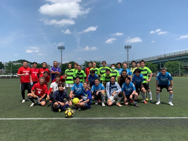 試合前ミーティング:7月の予定がほぼ決まったこと、毎月第4日曜日朝8時30分からZOOMで全体会議をすることなどが伝達されました。試合については、40が2チームに分かれて、計3チームで、各々15分×4本でキーバー、審判等を出すこと、4-4-2のフォーメーション確認しました。久しぶりなのでけがをしないように無理せずにいこうと。