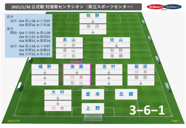 前半 1-0 得点者:後藤(アシスト:小谷)