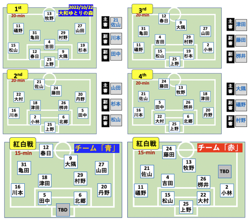一方、2,4本目は最後までボールが落ち着かず、数回あったチャンスもカウンターのみで、ボールをしっかり繋いでシュートまで行くことが出来ず、パスの受け手、出し手、そして3人目まで予測して動くことが必要と感じました。