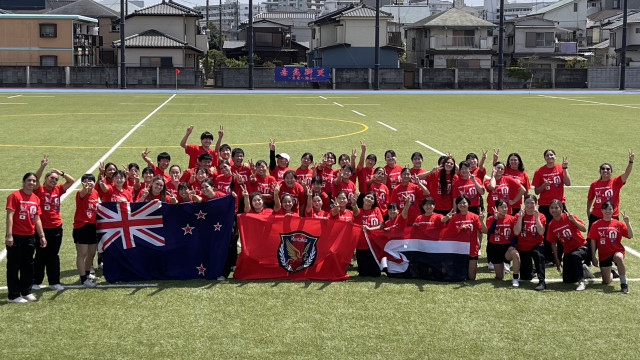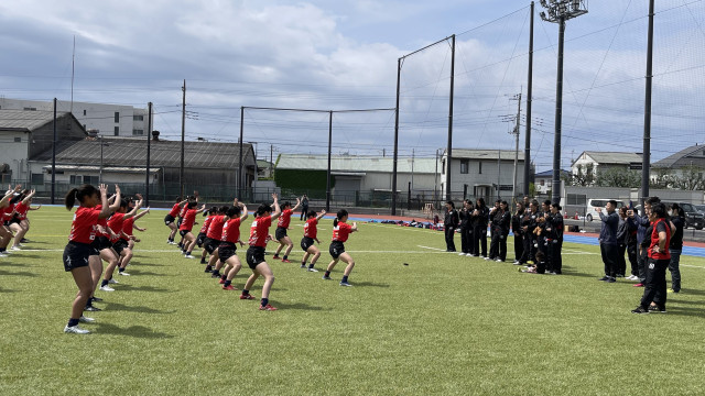 グラウンドでは、サニックスワールドユースに出場するマヌクラ高校生(NZ代表🇳🇿)と麗澤高校生の交流イベントあり。将来の女子NZ代表によるハカと、将来の女子日本代表によるソーラン節でエール交換。最後は互いにフリ付けを教え合って一緒に披露。