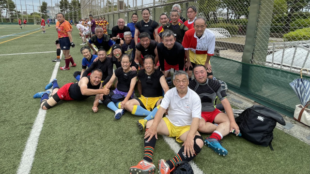 クリスマスですが練習敢行。 先日、U18日本セブンス代表メンバーとして世界一を果たした三好さんと一緒に記念写真。 ラグビーおじさんには冥土の土産となりました。 阿部部員(赤パン)は、左鎖骨の心労性疲労骨折から復活。華麗なパスを披露していました。
