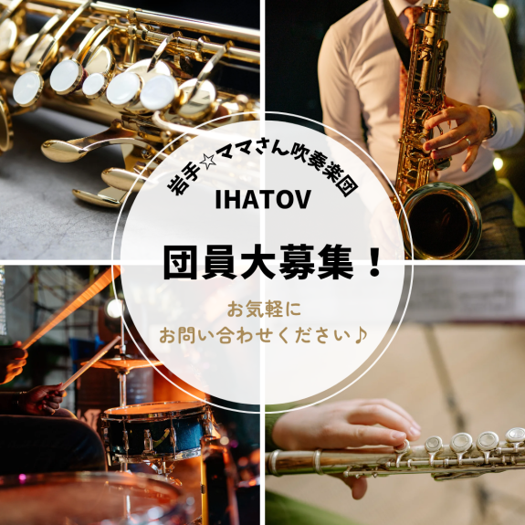IHATOVでは、全てのパートで団員を随時募集しています。 詳細は「団体情報」の【見学・入団について】をご覧ください♪