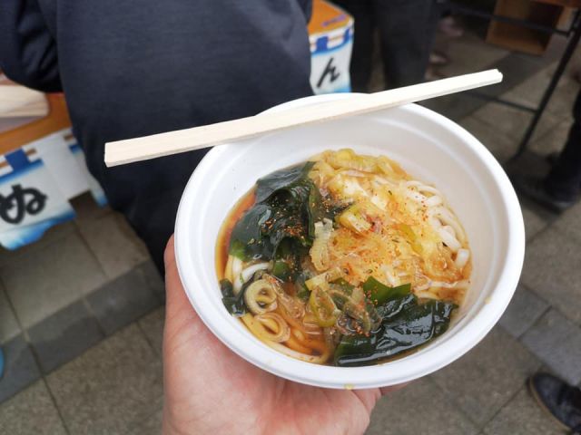 会場の外では、おしるこ、うどん、たこ焼き、焼きそばなどの出店が並び、おいしいだけでなく、冷えた身体を温めるにも最適で、大盛況でした。
