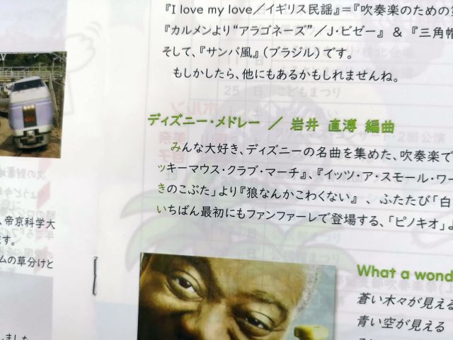 まだパンフレットをお持ちの方は、曲紹介ページのディズニー・メドレーのところを探してみてください。
