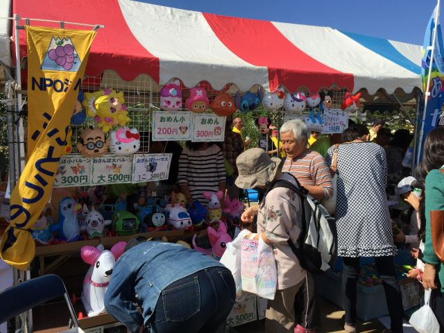 富士ぶどうの会では恒例のスーパーボールすくいやヨーヨー釣り、お散歩わんわん、お散歩自動車シリーズ、かわいいお面、先日の芋ほりのサツマイモなどを販売しました!