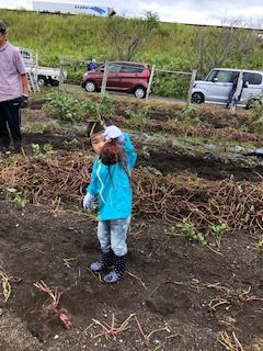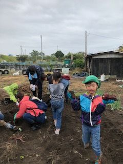 小雨が振っているにもかかわらず、元気にさつまいも掘りを行いました。
