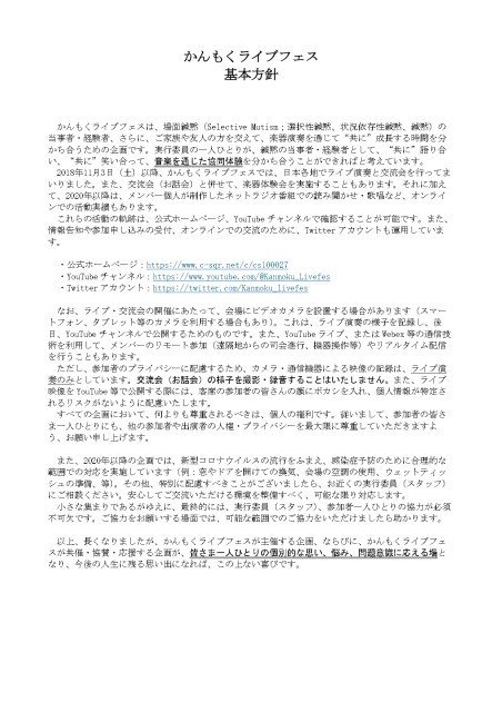 かんもくライブフェス主催場面緘黙交流会&ライブ基本方針&参加観覧規定