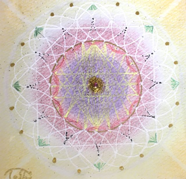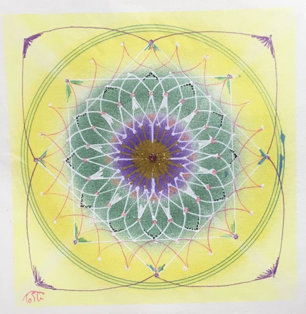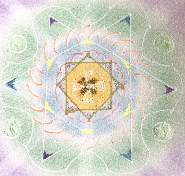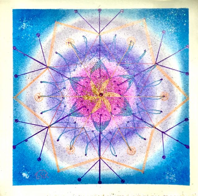 3色のパステルとボールペンで描く簡単マンダラ絵。