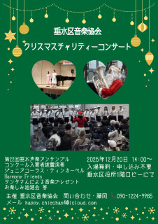 子どもたちのバラエティーに富んだ心温まる演奏を垂水区音楽協会主催でお届けしています。