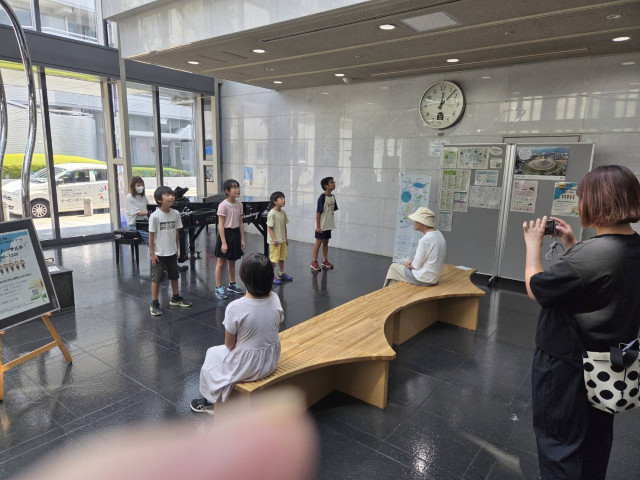今年も区役所1階ロビにあるストリートピアノ、「しおかぜハーモニー」を使用した公開リハーサルが12・14日に行われ、道行く人々も歌声に耳を傾けていました。